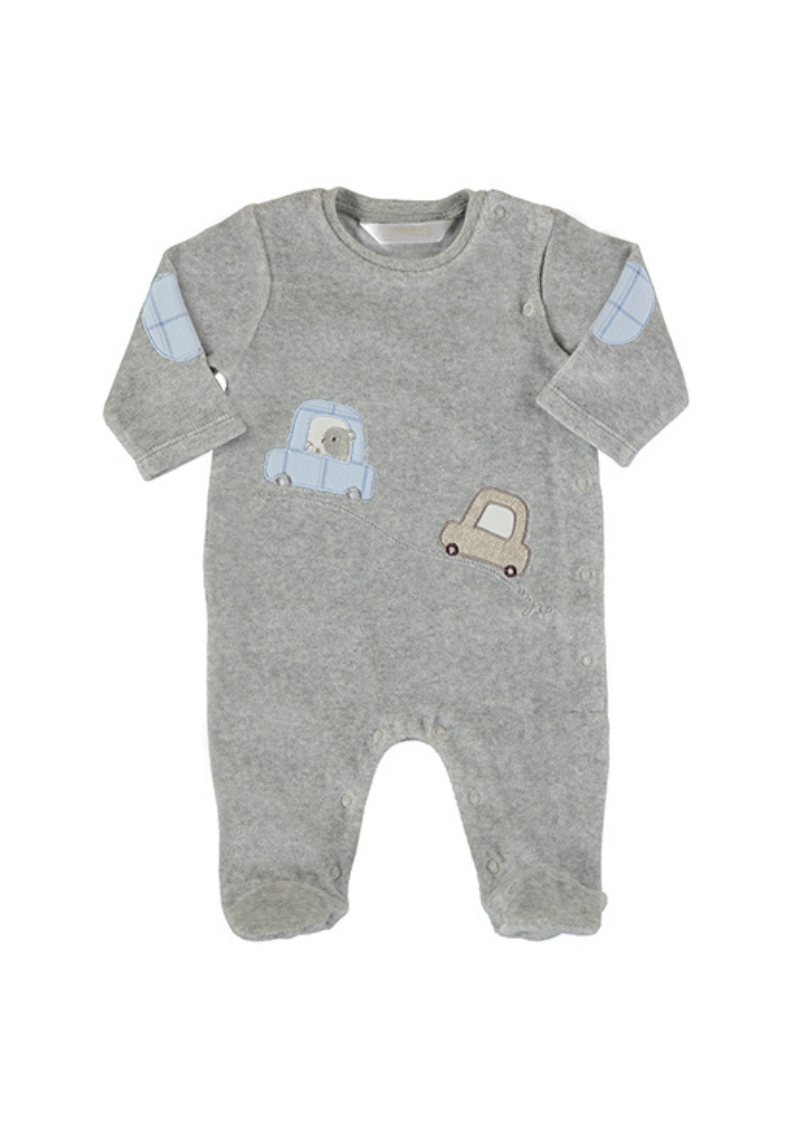 - Adorable Design: Grey velour onesie with car prints for a cute and charming look.
