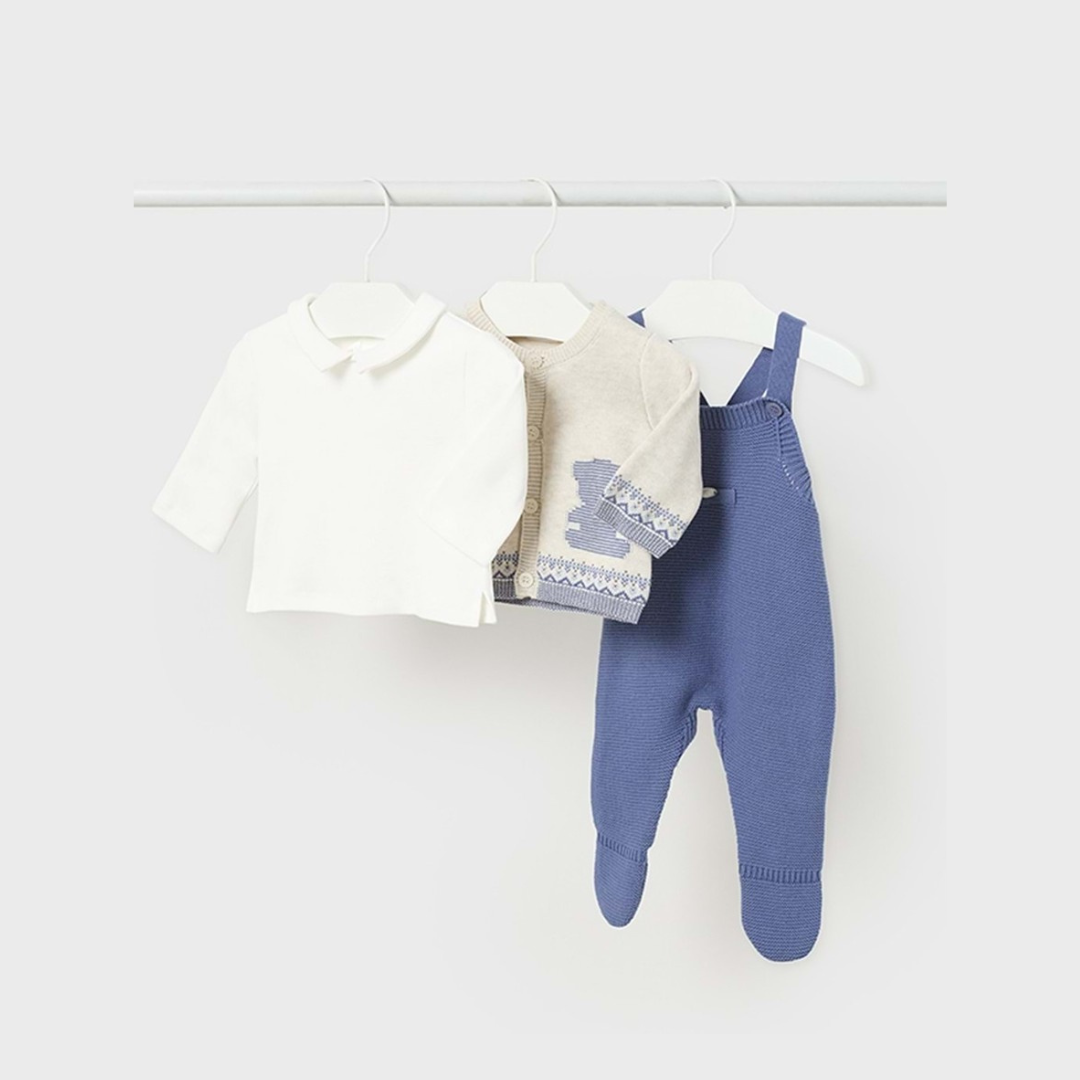 3pc Winter Blue Knit Overall with Top & Sweater