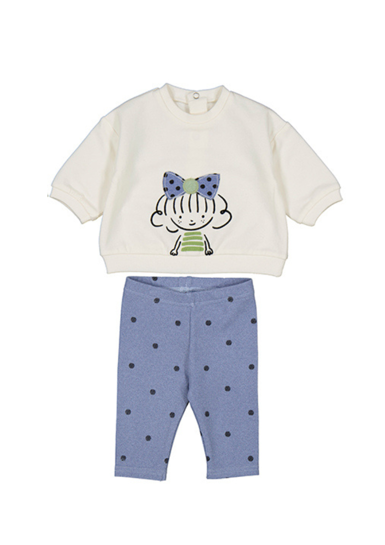 2pc Beige Sweatshirt with Little Girl and Grey Black Dot Legging
