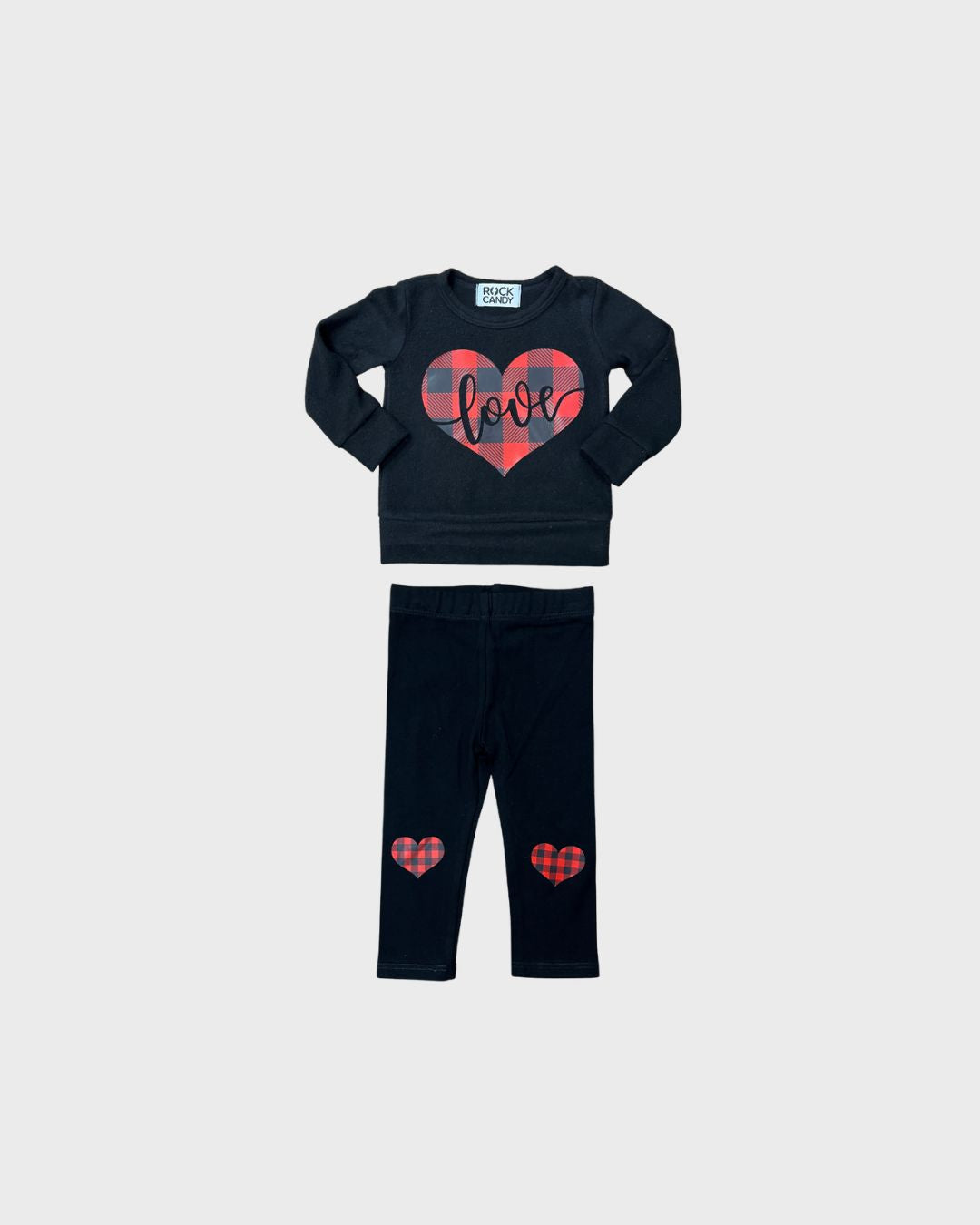 2pc Black Plaid Heart Top w Leggings