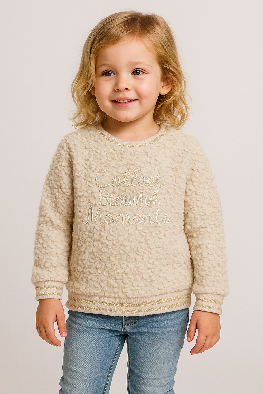 • Gold-thread ribbed neckline + striped cuffs and hem for a polished touch