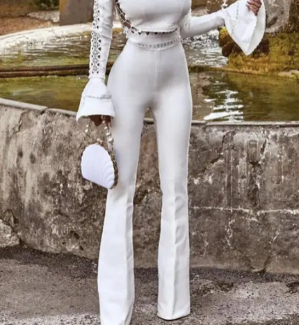 PERFECT PAIR: White Open Flare Long Sleeve Top