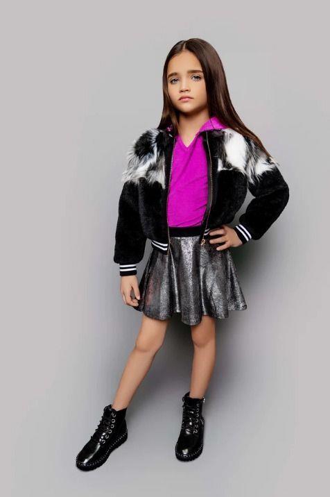 This unique jacket features irresistibly soft and cozy faux fur fabric with a timeless black and white design. She’ll stay warm and look cool!