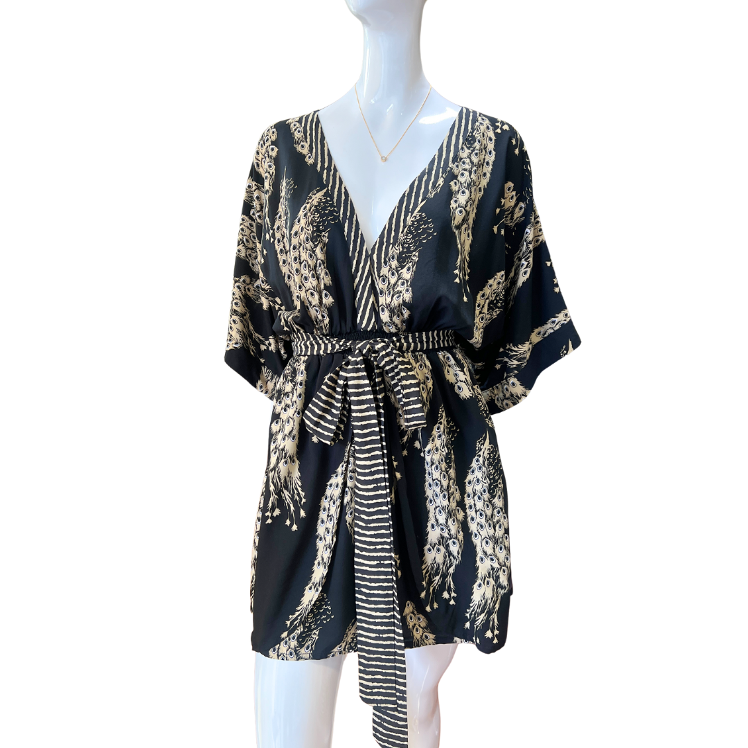 - Enhance your wardrobe with our V-Neck Empire Waist Short Dress, featuring a double front layer detail on the bottom skirt and a detachable belt for versatile styling.