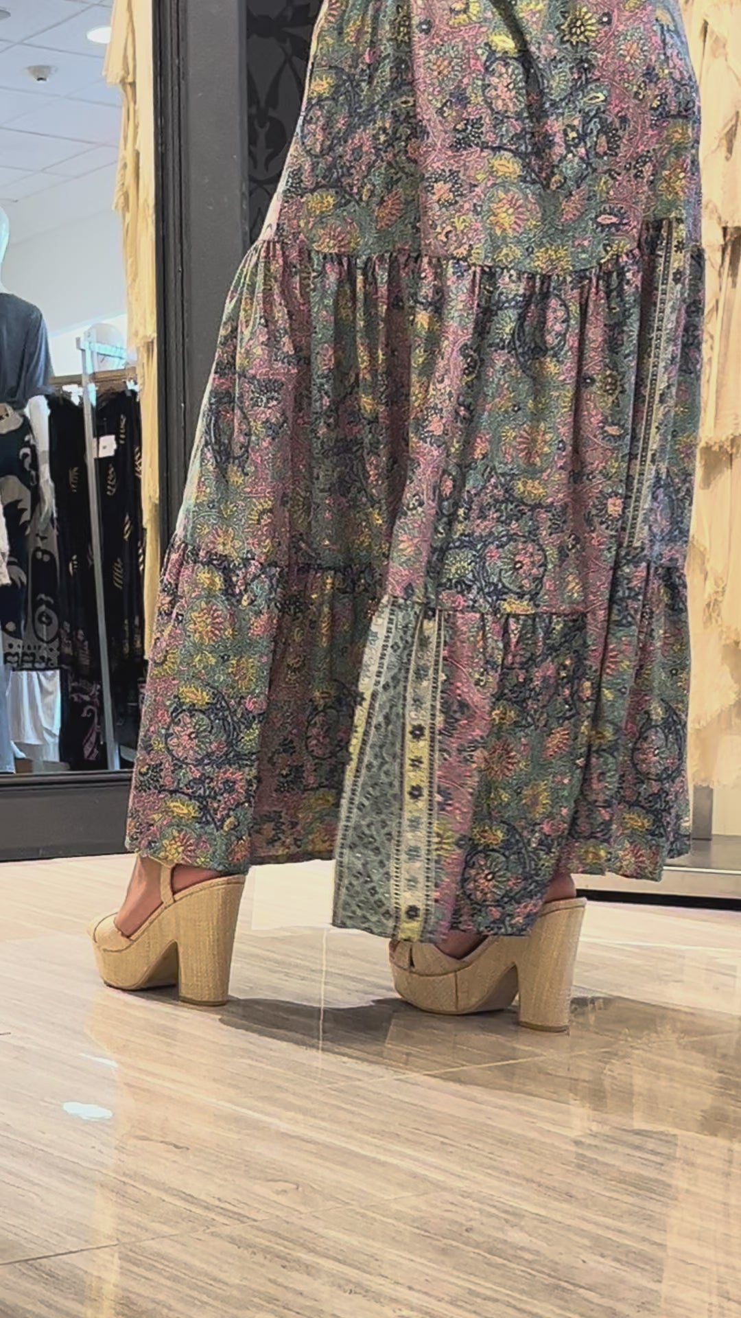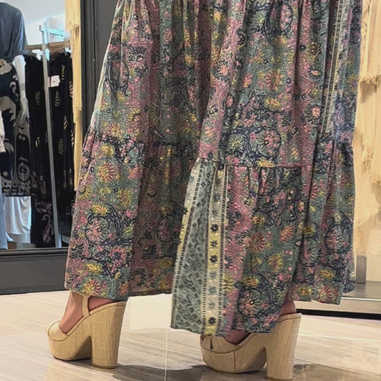 Romance meets shimmer in this flutter-sleeve wrap dress, adorned with a delicate metallic print that catches the light with every step. Soft ruffles frame the shoulders and cascade down the skirt, while the tie-waist silhouette offers a flattering, adjustable fit. Perfect for garden parties, weddings, or any occasion where you want to look effortlessly radiant.