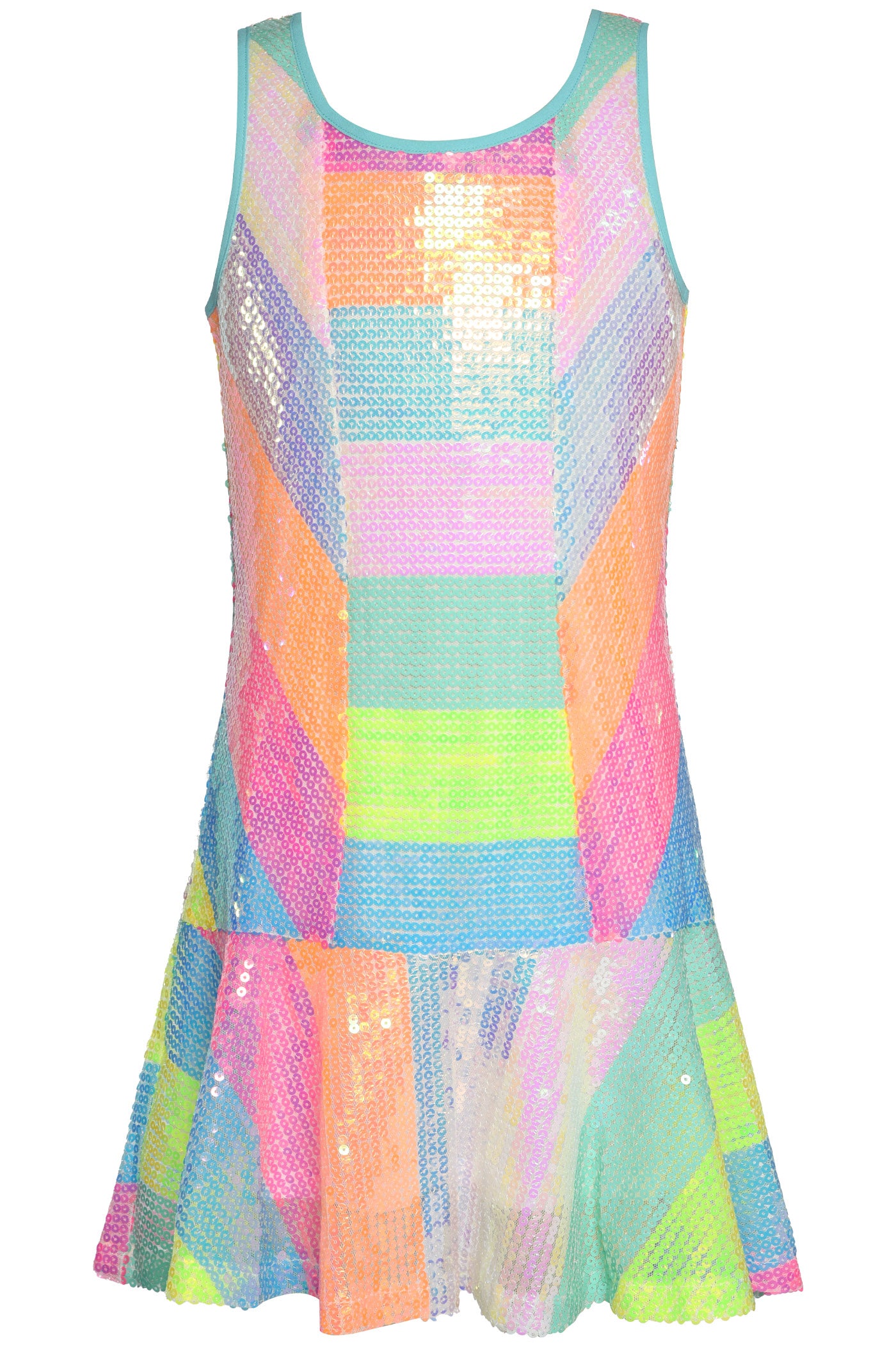 - Featuring a dazzling sequined stripe design and a playful dropped waist, this dress is perfect for parties and special events.