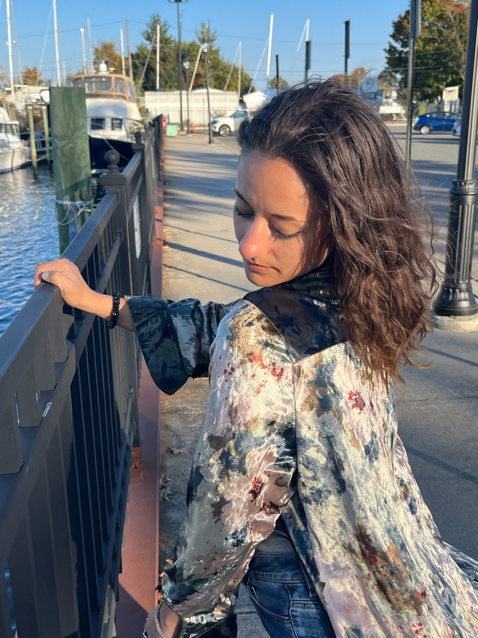 Printed Abstract Watercolor LS Velvet Button Down Shirt