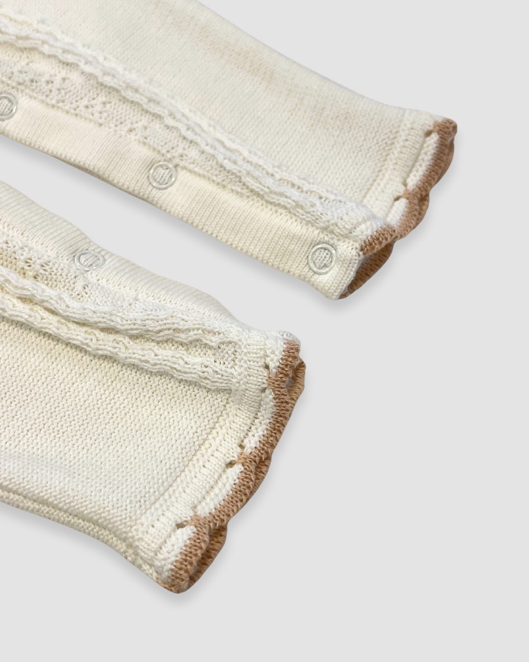 Dress your little one in timeless charm with the Knit Romper with Bow and Trim Detail. This soft pink knit one-piece features a delicate lace front panel and a satin bow for a touch of elegance. Finished with scalloped trim at the cuffs and hem, this romper is both cozy and dressy—perfect for special occasions or everyday moments made extra sweet.