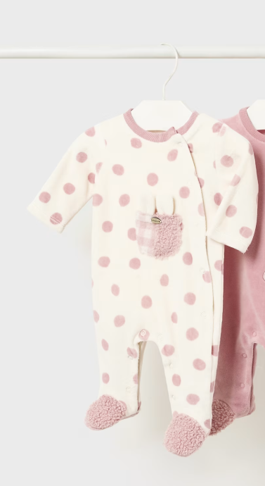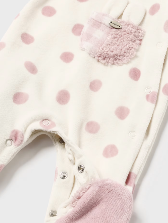 Off White w Pink Polka Dot Footy & Bunny Ears Side Pocket